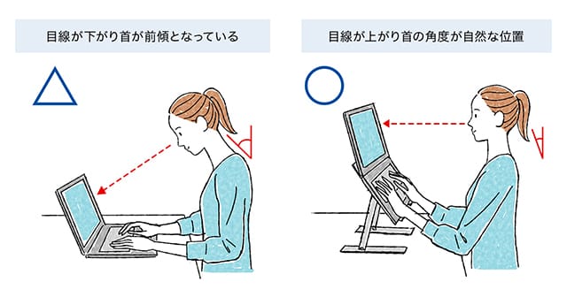 姿勢が崩れると、首や肩の筋肉に負担が集中し、